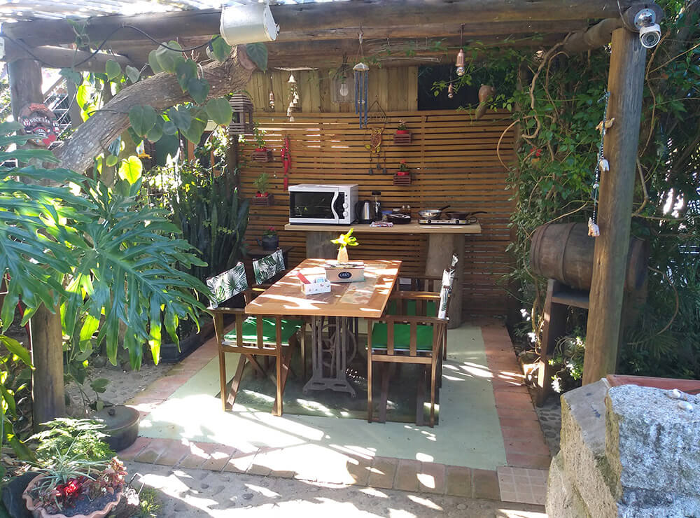 As estadias incluem uma farta cesta de café da manhã servida na varanda da suíte diariamente, espaço de convivência com cozinha e churrasqueira compartilhada, estacionamento com câmeras de segurança, internet Wi-Fi gratuíta.