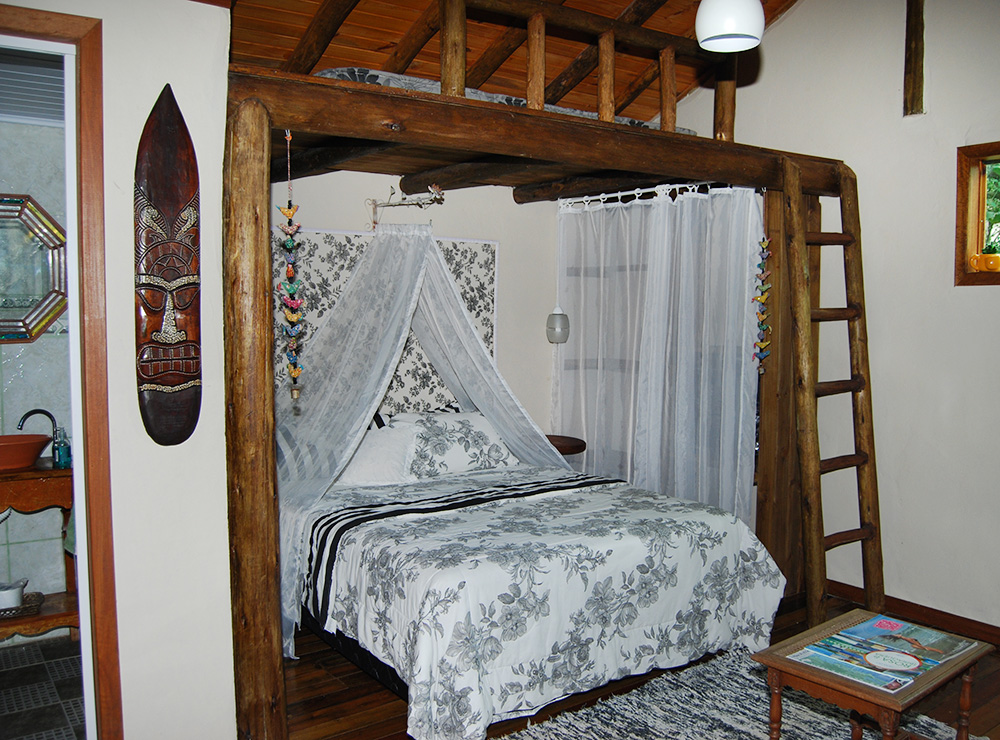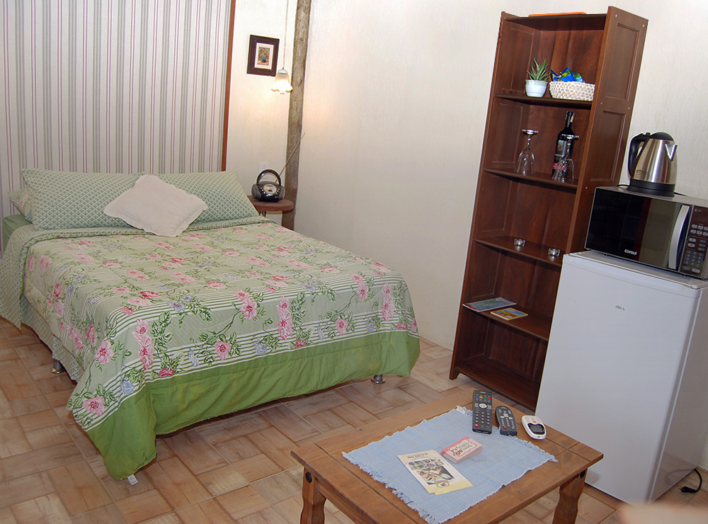 A Suíte Beija-flor (piso térreo / até 5 pessoas), possui as mesmas características dos anteriores, exceto lareira e banheira de hidromassagem, sendo o chuveiro com aquecimento a gás. A Suíte Beija-flor dispõe de mais um sofá-cama e um mezanino com colchão solteiro tipo futon , ideal para acomodação de um quinto hóspede.