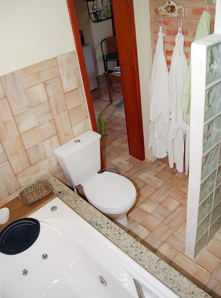 As Suítes Canário (piso térreo / até 2 pessoas) e Bem-te-vi (1º andar / até 2 pessoas) possuem ar condicionado split, frigobar, microondas, TV Led de 32'', cama box casal, travesseiros, roupa de cama percal 100% algodão, toalhas, lareira, chuveiro elétrico, banheira com hidromassagem com aquecimento a gás e varanda com rede.